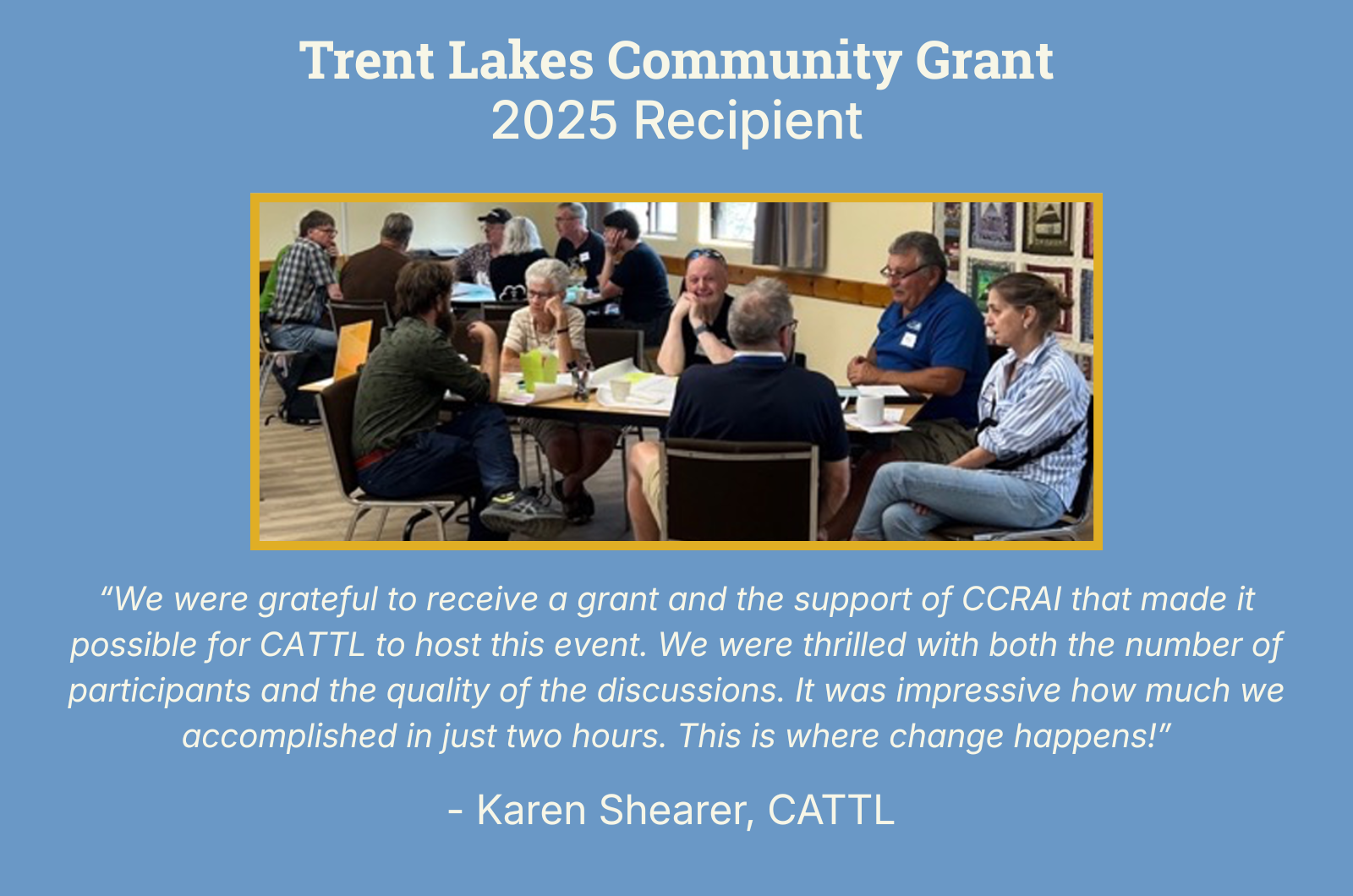 The Community Grant provides non-repayable funding to organizations located within Trent Lakes.